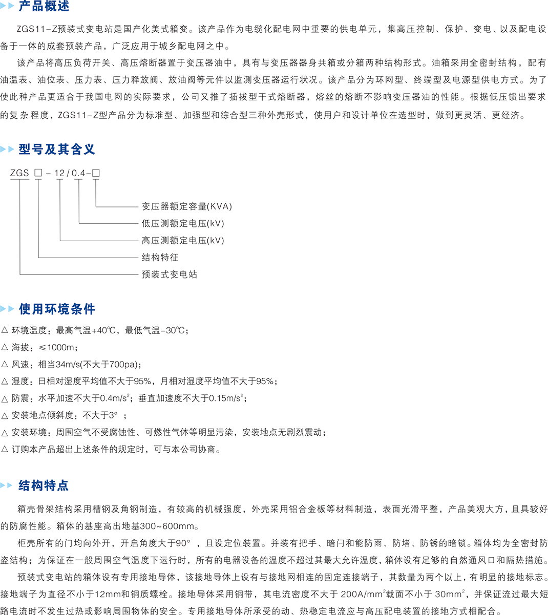 > ZGS11-Z系列戶外預(yù)裝式變電站